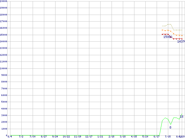 | Celeron D 351 (3.20GHz)の価格推移 | | | (2004年6月4日~2005年8月19日) |