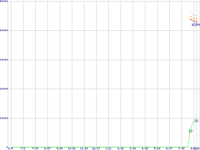 | Athlon 64 X2 3800+ (2.0GHz,L2 512KBx2)の価格推移 | | | (2004年6月4日~2005年8月19日) |