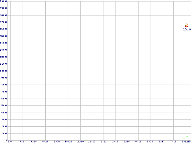 | Sempron 3400+ (2GHz,L2 256KB)の価格推移 | | | (2004年6月4日~2005年8月19日) |