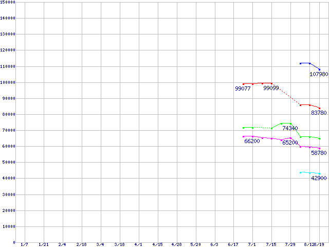 Socket 939 (FSB 1000MHz,L2 1MB)の最安値推移