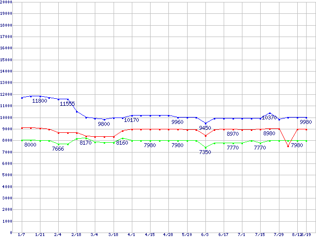 Socket 754 (FSB 800MHz,TDP35W)の最安値推移