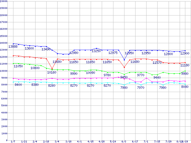 Socket 478 (FSB 533MHz,L2 256KB)の最安値推移