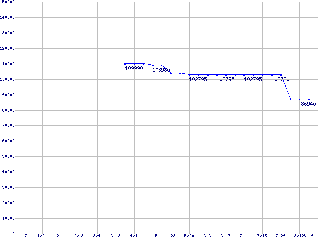 Socket 940 (FSB 1000MHz,L2 1MB)の最安値推移