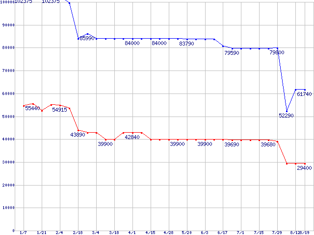 Socket 940 (FSB 1000MHz,L2 1MB)の最安値推移