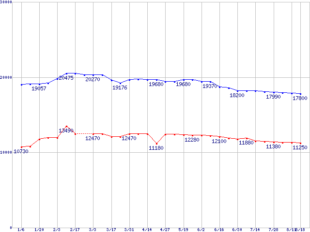 WD Raptor (10000rpm,Serial ATA/150,8MB)の最安値推移