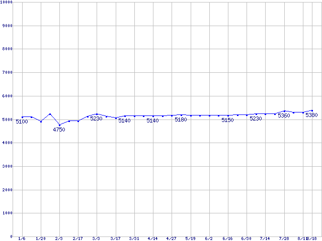 | DiamondMax Plus 8 (7200rpm,2MB,Ultra ATA/133)の最安値推移 | | | (2005年1月6日~2005年8月18日) |