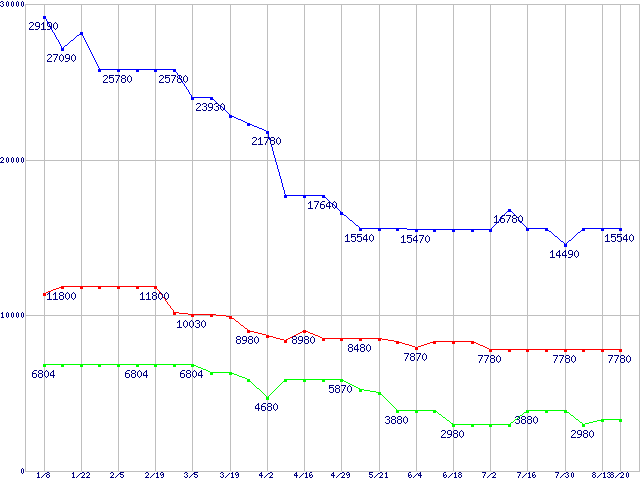 PC3200(DDR400) DDR SDRAM DIMMの最安値推移