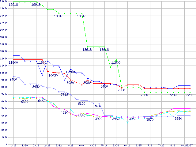 ※点線部は販売店が確認できなかった、または調査データがないことを示します