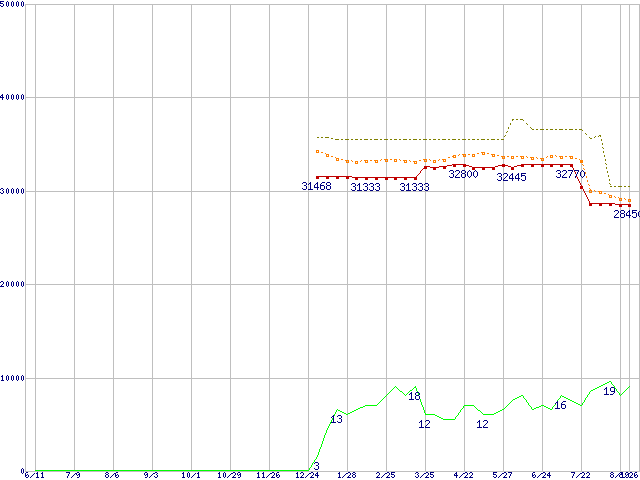| Pentium M 750 (1.86GHz)の価格推移 | | | (2004年6月11日~2005年8月26日) |