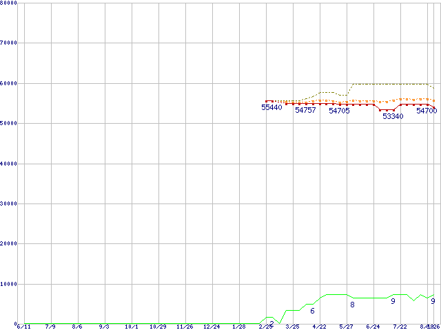 | Xeon 3.2GHz (L2 2MB)の価格推移 | | | (2004年6月11日~2005年8月26日) |