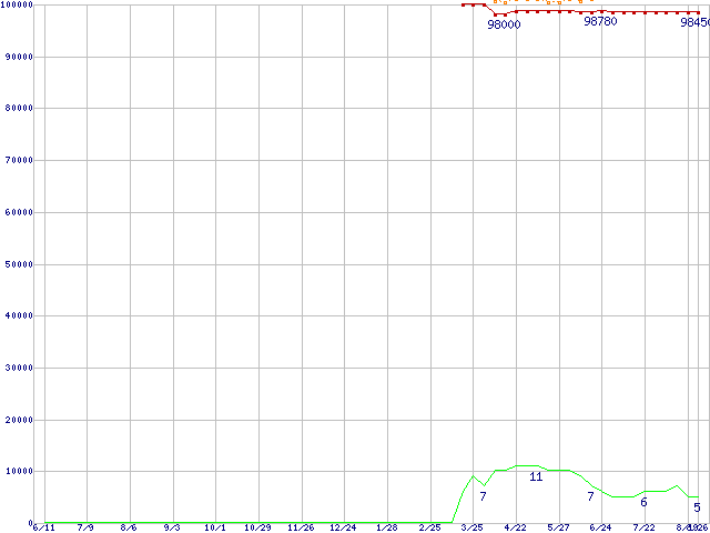 | Xeon 3.6GHz (L2 2MB)の価格推移 | | | (2004年6月11日~2005年8月26日) |