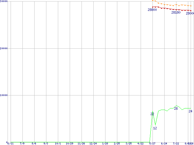 | Pentium D 820 (2.80GHz)の価格推移 | | | (2004年6月11日~2005年8月26日) |