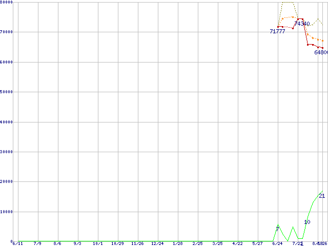 | Athlon 64 X2 4400+ (2.2GHz,L2 1MBx2)の価格推移 | | | (2004年6月11日~2005年8月26日) |