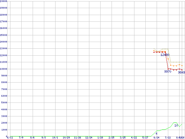 | Celeron M 360J (1.4GHz,NX bit対応)の価格推移 | | | (2004年6月11日~2005年8月26日) |
