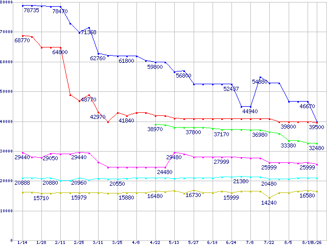 Socket 939 (FSB 1000MHz,L2 1MB)の最安値推移