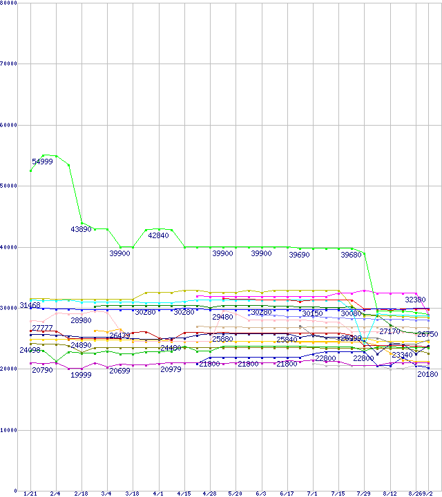 CPU主要製品(最安値1万円~2万円未満)の最安値推移