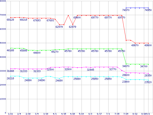 mPGA 479M・FSB 533MHzの最安値推移