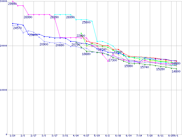HDD 400GB以上の最安値推移