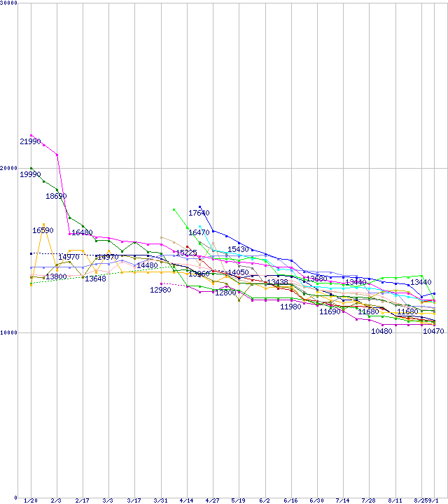 ※点線部は販売店が確認できなかった、または調査データがないことを示します