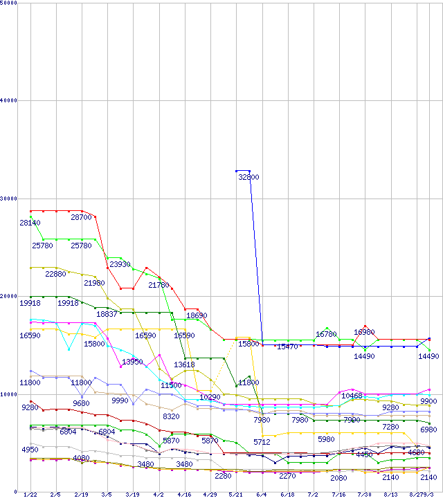 メモリ主要製品の最安値推移