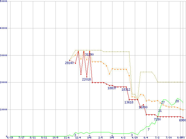 PC2-5300(DDR2-667) DDR2 SDRAM DIMMの最安値推移