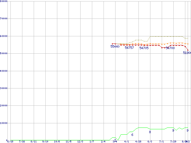 | Xeon 3.2GHz (L2 2MB)の価格推移 | | | (2004年6月18日~2005年9月2日) |