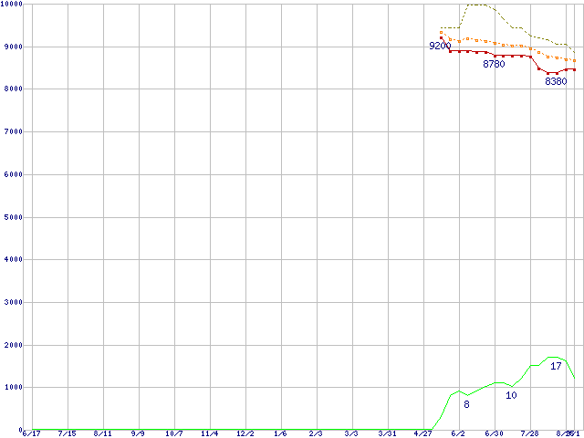 | 6L120M0 (120GB,8MB)の価格推移 | | | (2004年6月17日~2005年9月1日) |