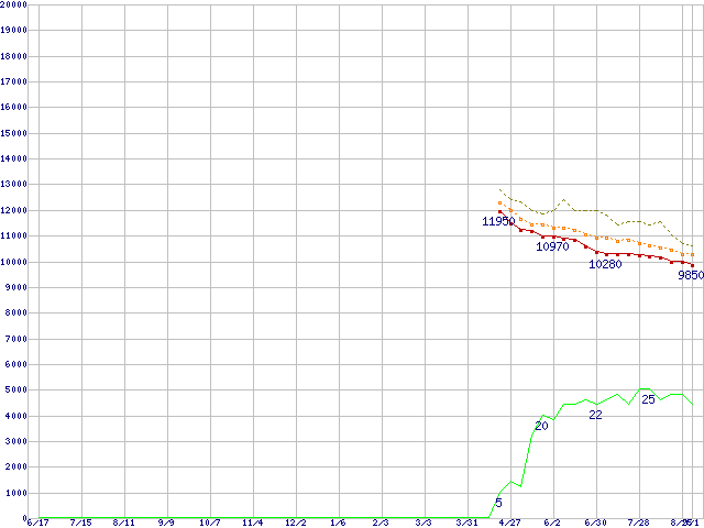 | 6L200M0 (200GB,8MB)の価格推移 | | | (2004年6月17日~2005年9月1日) |