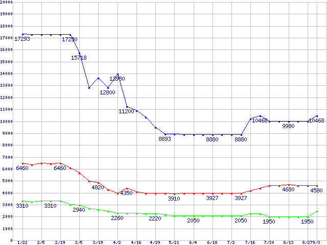 PC2700(DDR333) DDR SDRAM DIMMの最安値推移