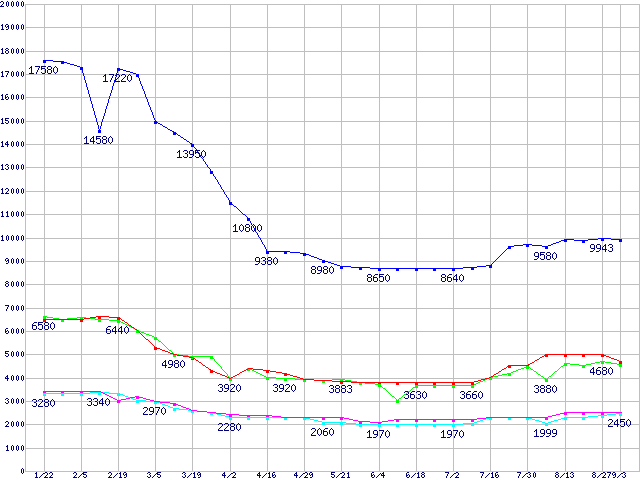 PC3200(DDR400) DDR SDRAM DIMMの最安値推移