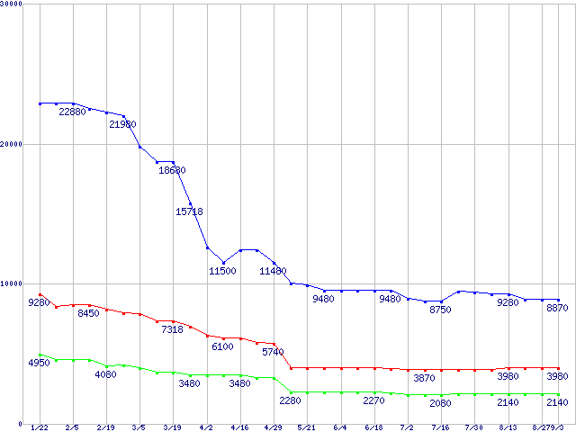 メモリ主要製品の最安値推移