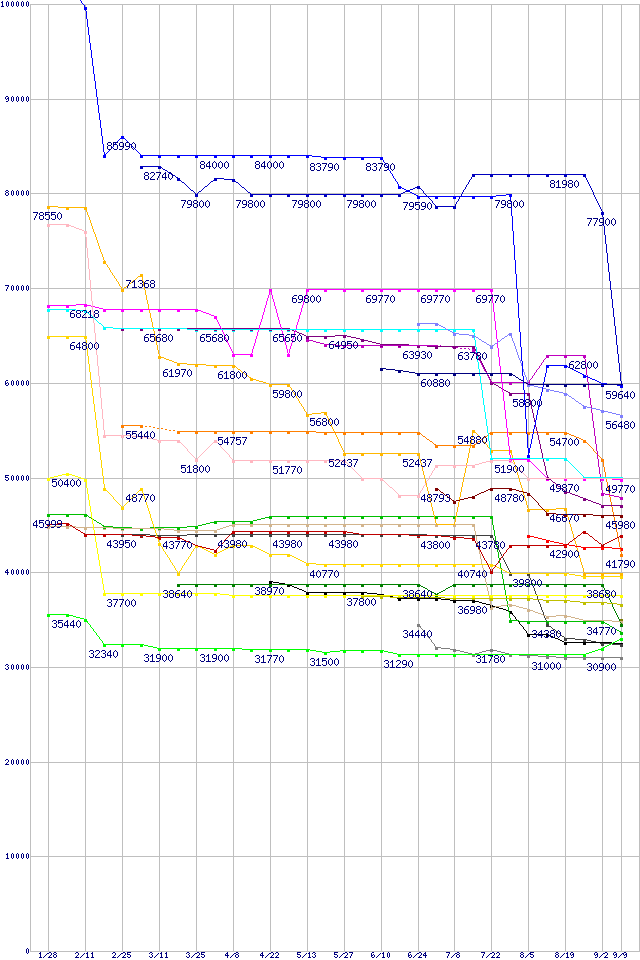 CPU主要製品(最安値6万円以上)の最安値推移