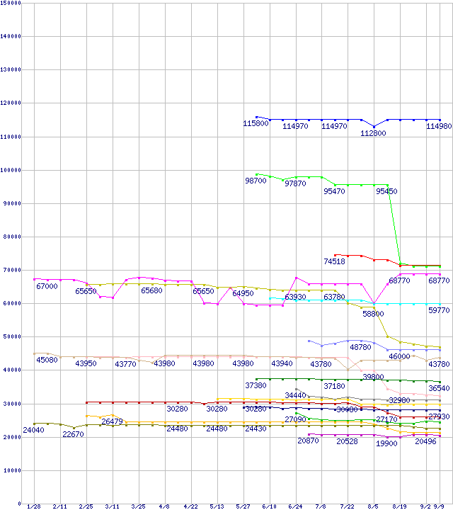 ※点線部は販売店が確認できなかった、または調査データがないことを示します