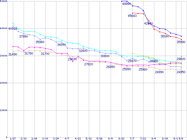 HDD主要製品(最安値1万5千円~2万円未満)の最安値推移