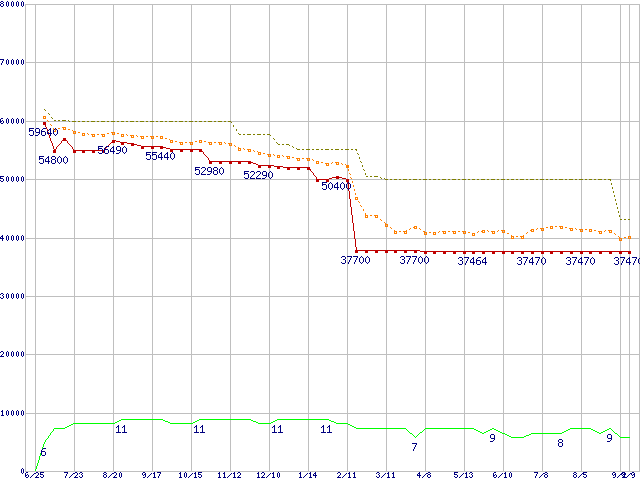 | Xeon 3.2GHzの価格推移 | | | (2004年6月25日~2005年9月9日) |