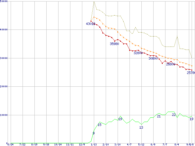 | ST3400832A (400GB)の価格推移 | | | (2004年6月24日~2005年9月8日) |