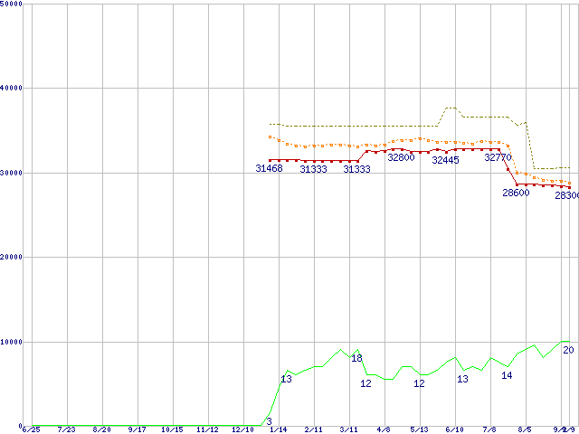 | Pentium M 750 (1.86GHz)の価格推移 | | | (2004年6月25日~2005年9月9日) |