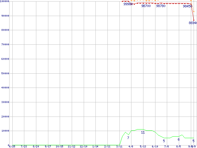 | Xeon 3.6GHz (L2 2MB)の価格推移 | | | (2004年6月25日~2005年9月9日) |