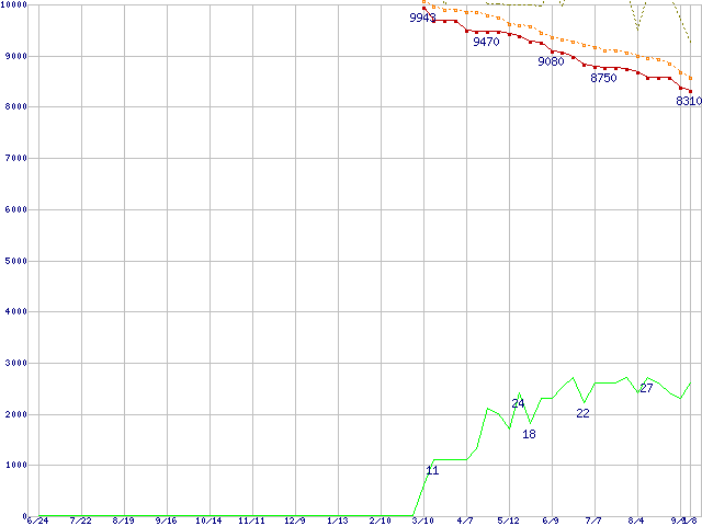 | HDT722516DLAT80 (160GB,8MB)の価格推移 | | | (2004年6月24日~2005年9月8日) |