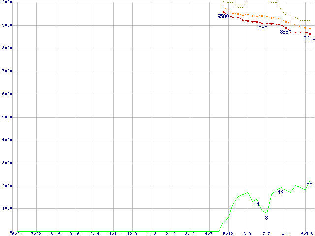 | 6L160M0 (160GB,8MB)の価格推移 | | | (2004年6月24日~2005年9月8日) |