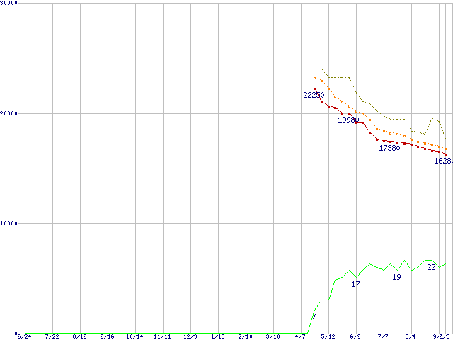 | 7L300S0 (300GB)の価格推移 | | | (2004年6月24日~2005年9月8日) |