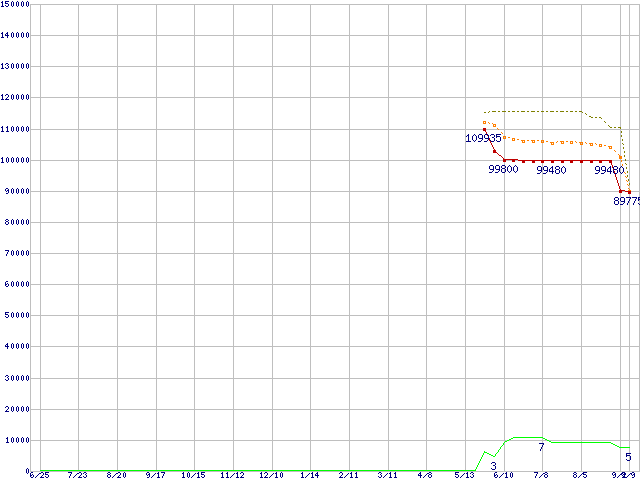 | Opteron 265 (1.8GHz)の価格推移 | | | (2004年6月25日~2005年9月9日) |