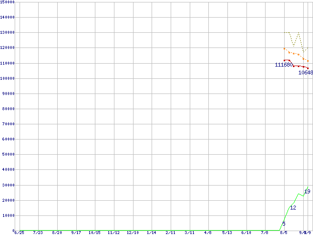 | Athlon 64 X2 4800+ (2.4GHz,L2 1MBx2)の価格推移 | | | (2004年6月25日~2005年9月9日) |