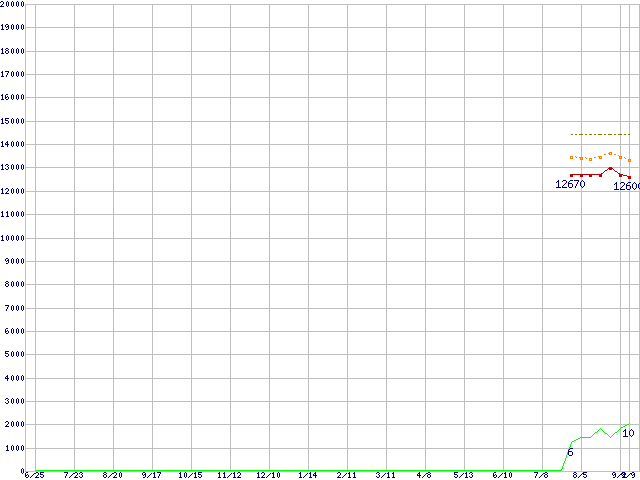 | Celeron D 346 (3.06GHz)の価格推移 | | | (2004年6月25日~2005年9月9日) |