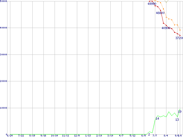 | HDS725050KLA360 (500GB,16MB)の価格推移 | | | (2004年6月24日~2005年9月8日) |