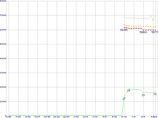 | Pentium D 840 (3.2GHz)の価格推移 | | | (2004年6月25日~2005年9月9日) |