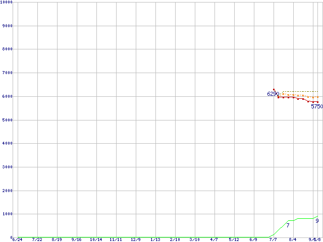 | 6L040P0 (40GB,8MB)の価格推移 | | | (2004年6月24日~2005年9月8日) |