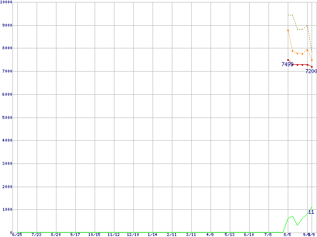 | Sempron 2600+ (1.6GHz,L2 128KB,64bit対応)の価格推移 | | | (2004年6月25日~2005年9月9日) |