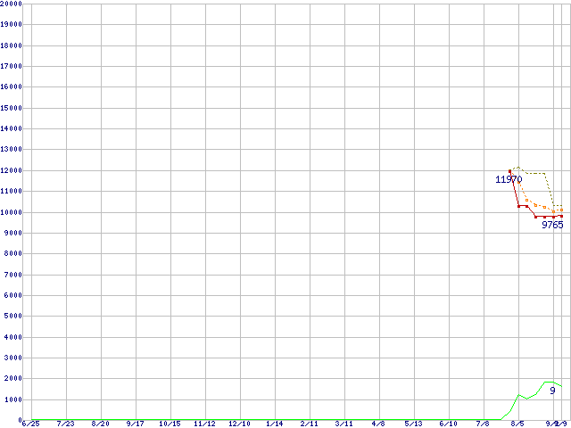 | Sempron 3000+ (1.8GHz,L2 128KB,64bit対応)の価格推移 | | | (2004年6月25日~2005年9月9日) |