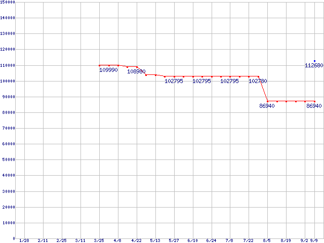 Socket 940 (FSB 1000MHz,L2 1MB)の最安値推移